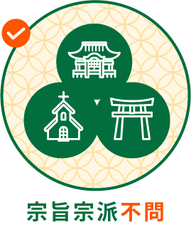 無宗教、神道、キリスト教、仏教も宗旨宗派問わず(浄土真宗、浄土宗、臨済宗、曹洞宗、真言宗、天台宗、日蓮宗、日蓮正宗、黄檗宗、創価学会など全て)、どなた様でもご利用いただけます。